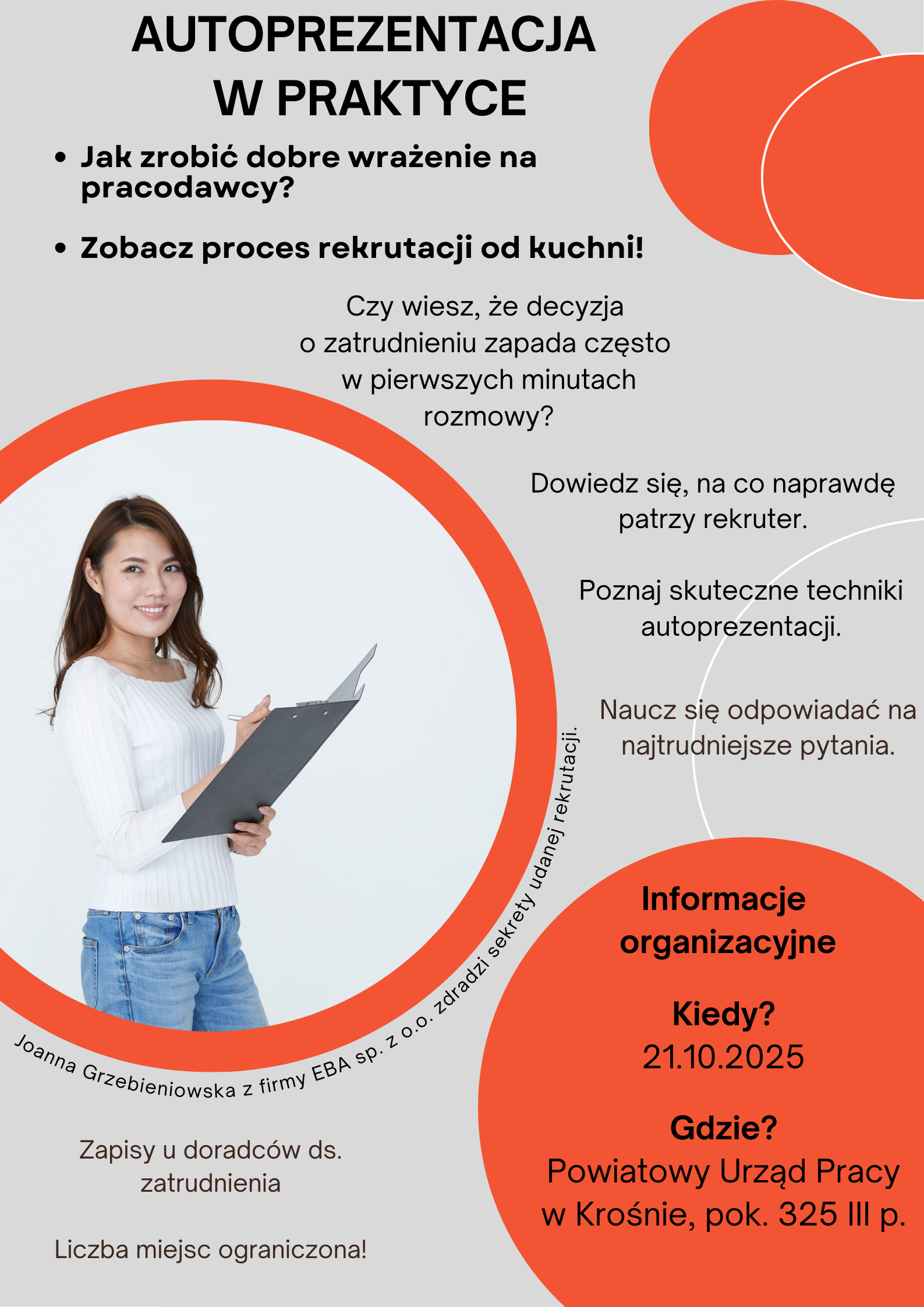 Zapraszamy do udziału w grupowej poradzie zawodowej "Autoprezentacja w praktyce" - Powiatowy Urząd Pracy w Krośnie