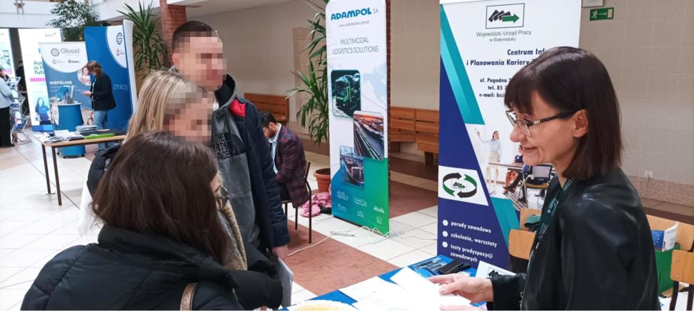 Informacje na temat możliwości uzyskania wsparcia w obszarze poruszania się po rynku pracy studenci mogli uzyskać od przedstawicieli Politechniki Białostockiej - Biuro Karier i Współpracy z Absolwentami Politechniki Białostockiej oraz przedstawicieli Centrum Informacji i Planowania Kariery Zawodowej Wojewódzkiego Urzędu Pracy w Białymstoku. Pracownicy WUP w Białymstoku udzielali informacji na temat usług urzędów pracy, w tym możliwości skorzystania z poradnictwa zawodowego, możliwości poszukiwania pracy w ramach sieci EURES.